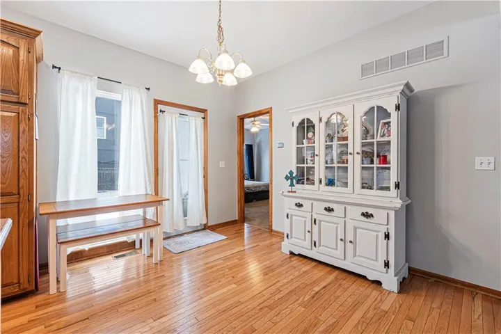 +"PublicRemarks": "This is it!! A true RANCH on a corner lot under $300K will not last long. Newer neutral paint throughout the interior; classic black and white on the exterior! Beautiful gas fireplace in living room. Hardwoods and island in kitchen. Primary suite with jetted tub, shower stall, double vanity and walk in closet. 9 ft ceilings throughout make this open plan feel even larger. Fenced backyard and FULL SIZE basement ready to be finished to add even more living space. Home does need new carpet, but is priced accordingly. Come see the amazing potential to make this house your new home!!"