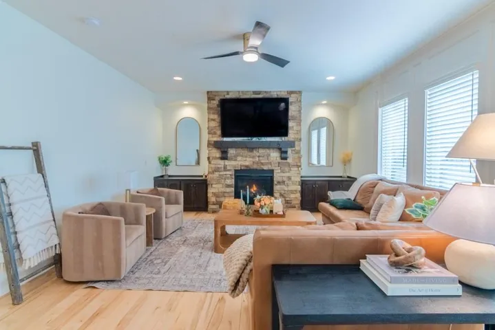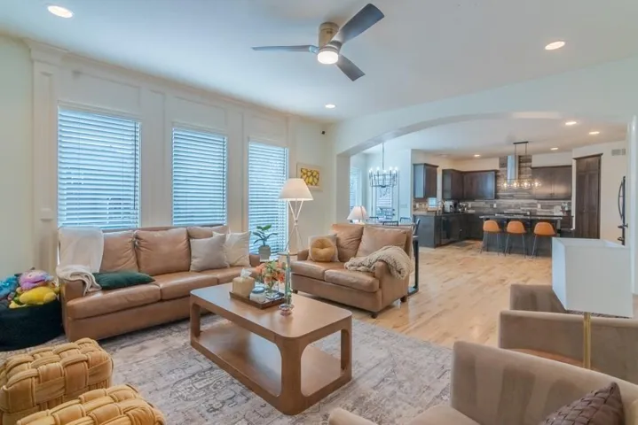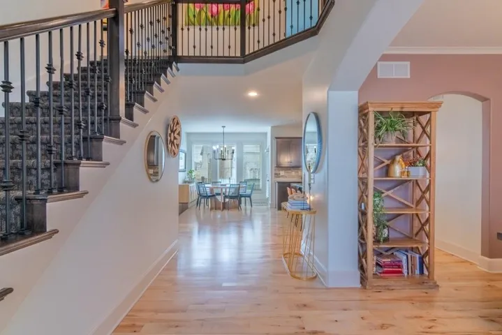 Step inside to a welcoming foyer featuring a custom artisan-built entry bench and thoughtfully designed tray ceilings and handrails. The sunlit dining room flows into a spacious living area, perfect for gatherings and everyday living. The primary suite impresses with stunning custom tile work and a fresh, spa-like feel.\r\n