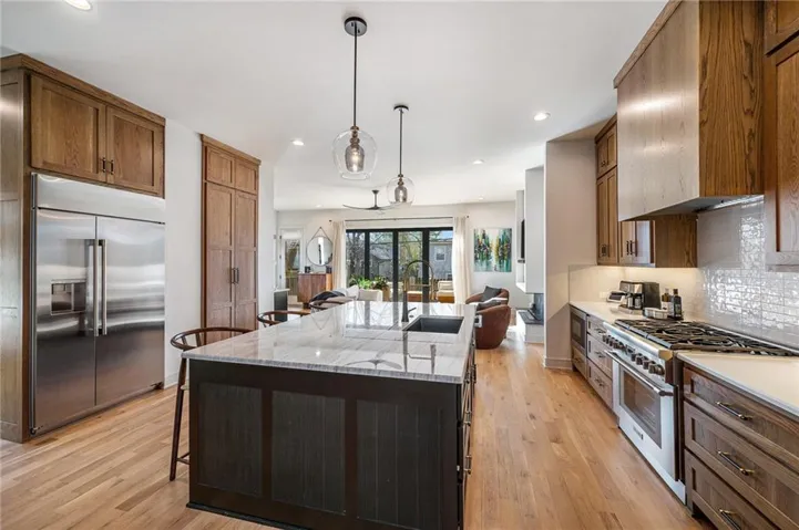 automation system for added convenience and security. Low maintenance yard and fenced for dogs. The prime location is walkable to parks, shopping, restaurants, Country Club Plaza, schools, Woodside fitness center, and hospital. With unparalleled attention to detail, this custom built home is the epitome of luxury living.