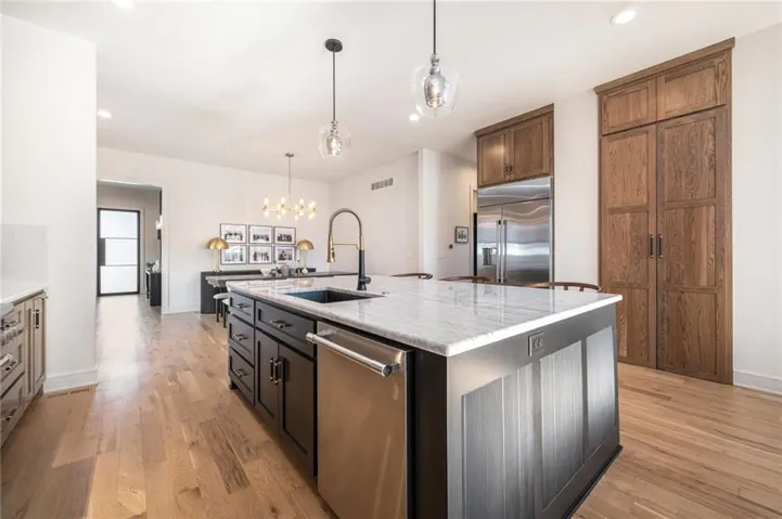 appliances, custom cabinetry, a large walk-in pantry, and an expansive island that flows seamlessly into the light-filled\r\n