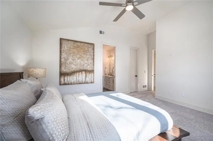 "LongDescription" => "Bedroom featuring LVP floors, ceiling fan, wood ceiling, and wood walls"