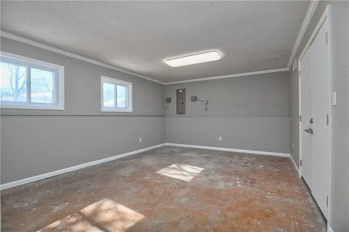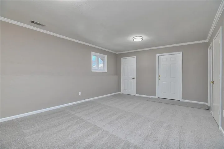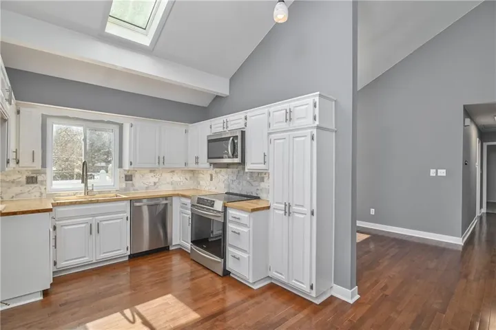 Ascend into this charming home and be instantly captivated by its welcoming atmosphere. The spacious great room serves as a stunning focal point, featuring an elegant, white-washed brick fireplace, striking wood accent wall, and soaring vaulted ceilings. The open-concept design seamlessly connects the kitchen, complete with a convenient breakfast bar, to the great room. The dining area offers sliding doors leading to an expansive 18x10 deck—perfect for outdoor entertaining—with steps descending to a securely fenced backyard. The finished lower level offers versatile living space that is great for entertaining or could be a 4th bedroom (just finish the already in place closet). The bonus room ideal for a workshop, home office, or workout room. Recent updates include fresh exterior paint, new carpet throughout the home, newer interior paint, some updated fixtures, updated kitchen, and updated hall bath. Located in a prime area, this home is a short distance to beloved community amenities including Sar-Ko-Par Park, Lenexa Aquatic Center, schools, library, and shopping destinations. \r\n