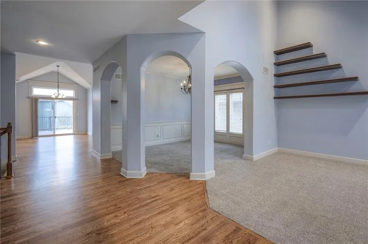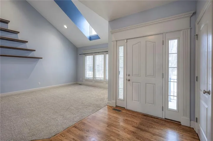 Beautiful Reverse Ranch with 2 bedrooms on main level and 2 on lower level. Unique open floor plan with vaulted ceilings, an arched opening to formal dining room, skylight in formal living room with custom built shelving. Hardwood floors have been refinished throughout, fresh paint on exterior and most of interior. Hearth room with fireplace open to kitchen area. Kitchen has a large walk-in pantry and nice sized granite kitchen island. New trex deck 2023, roof replaced 2024, iron fence and inground sprinkler system. Four foot wide staircase to lover level...great for moving furnitre in and out. Lower level is stubbed for a bath. Plenty of unfinished space in basement for storage.\r\n