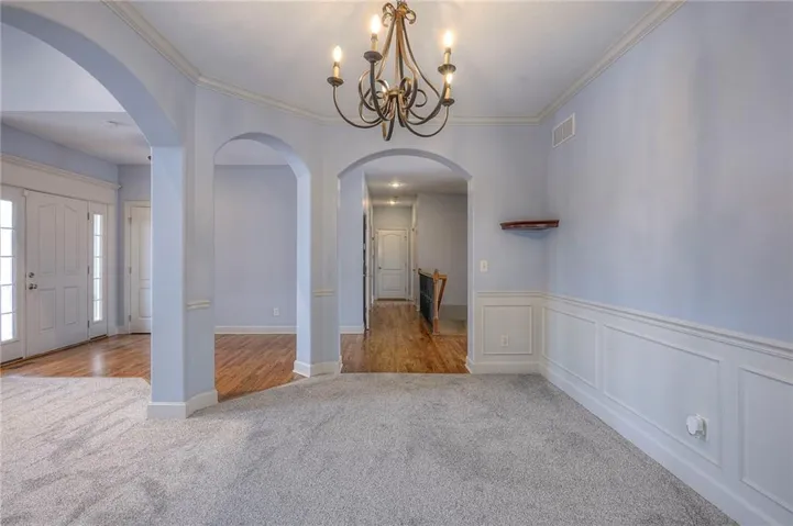 +"PublicRemarks": "The move-in ready "DAISY" is a Gorgeous 2-Story home with 2900 square feet backing to woods. Offering 5 Bedrooms, with the 5th Bedroom on the Main Level, and 4 Full Baths. Upgraded finishes and attention to detail this lovely home offers Rounded Arches, Custom Built Cabinets, HUGE Kitchen Island, Bonus Bar with beverage fridge, Floor to Ceiling Windows, Gourmet Kitchen, Gas Cooktop, Mudroom at Garage Entry and an Open Layout which makes it great for entertaining. The Second Level is just as impressive and features a Private and Expansive Primary Suite and Walk-in Closet that has access to the Laundry Room. The Primary Bath is luxurious with an oversized Tub and Walk-in Shower with tile walls. There are 3 more bedrooms and 2 more baths on this level. Beautiful Staircase overlooks the Front Entry. Huge walk-out basement that could be finished to fit the buyers needs."