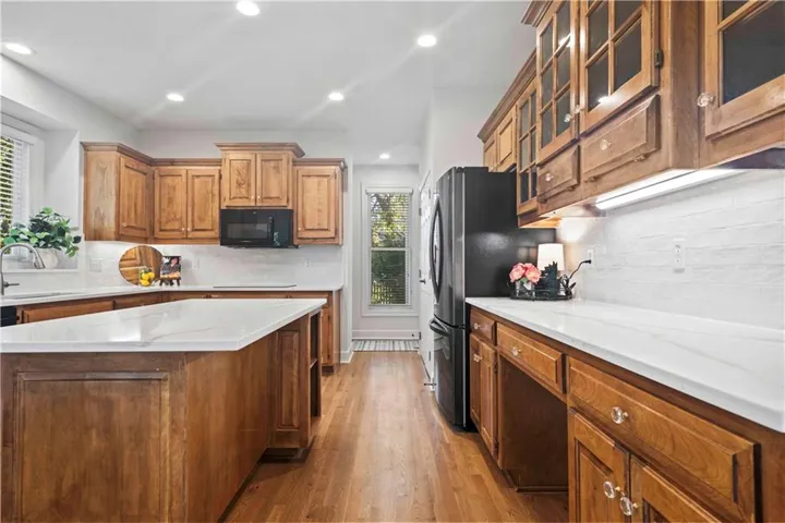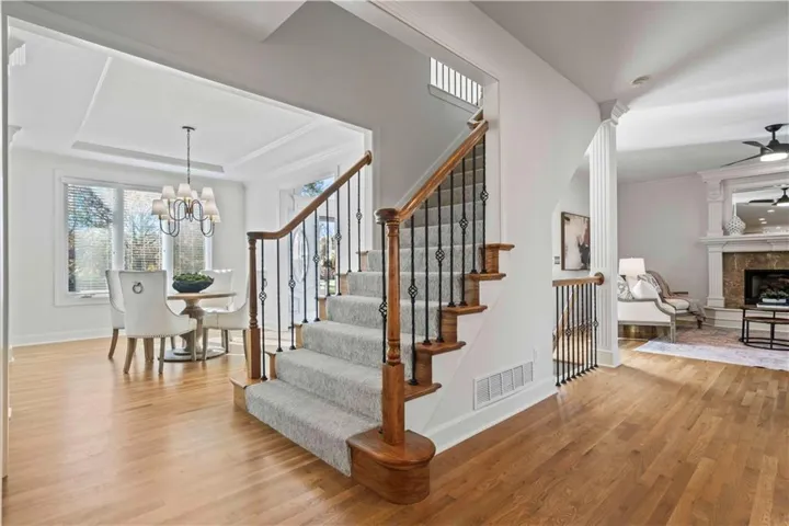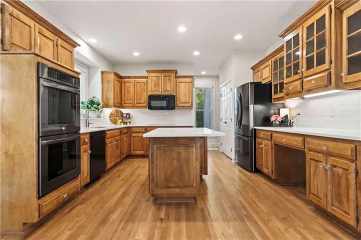 +"PublicRemarks": "Prepare to be impressed! Pictures do not do this one justice. This exquisite two-story home nestled in the sought-after Nottingham at Heritage Park neighborhood of Olathe, Kansas. Perfectly situated in the coveted Blue Valley Southwest School District, this 4-bedroom, 3 full bath, and 2 half bath home offers everything you’ve been dreaming of—and more! From the moment you step inside, you’ll be captivated by the fresh updates throughout, including new exterior and interior paint, gleaming new hardwoods and plush carpeting, new designer lighting, and hardware. The spacious kitchen is a showstopper with new quartz countertops, a stunning backsplash, and plenty of room to gather and entertain. The main level boasts office space and expansive living areas, ideal for hosting family and friends or simply enjoying quiet evenings at home. Upstairs, you’ll find generously sized bedrooms, including a luxurious primary suite, as well as the convenience of an upstairs laundry room. The fully finished basement provides even more space for entertainment, hobbies, or relaxation. Outside, the large lot offers endless possibilities for outdoor living and activities. With convenient access to the wonderful amenities at Heritage Park, including a fabulous dog park, golf course, walking trails, lake, and playground, this home is truly a must-see. Move-in ready and absolutely perfect—don’t miss your chance to make it yours!"