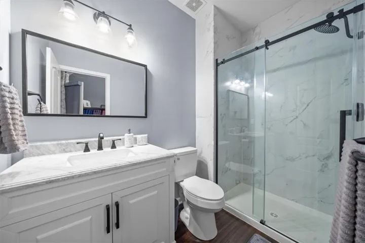 +"PublicRemarks": "Spring has sprung! Come and view this stunning 4-bed, 4.1-bath Falcon Valley home with a 3-car garage, nestled on a peaceful cul-de-sac. The upper level features two primary suites, spa-like bathrooms, and a versatile loft perfect for lounging or a home office. On the main level, enjoy an additional bedroom/office with an updated bath, updated ½ bath, updated laundry room, a beautifully updated kitchen with painted cabinets, granite top island, and inviting dining and living area with a cozy fireplace. The finished daylight basement offers endless possibilities with a wet bar, rec room, 4th bedroom, full bath, and a non-conforming 5th bedroom/office. Every bedroom closet has California Closet organizers in them. With fresh wall paint on the main and lower levels and refinished hardwood floors on the main level, this move-in-ready gem is a must-see!"