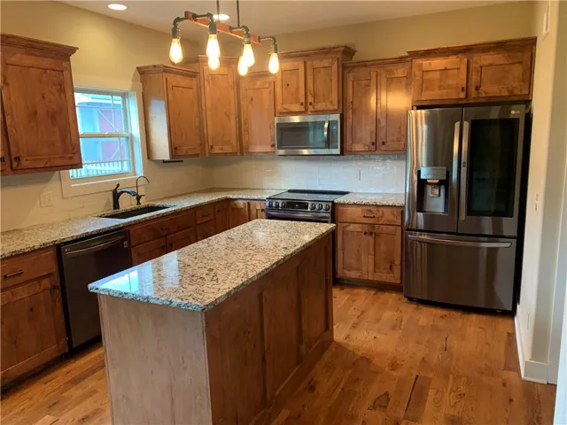 +"PublicRemarks": "Located in the exclusive Timber Hill Farms subdivision, this home combines craftsman details with rustic modern charm. The main level features natural hardwood floors, spacious living area with vaulted ceilings, large windows, stacked stone fireplace and large Flat Screen TV. Kitchen features include custom cabinetry, Stainless steel appliances that are Smart Home Ready, subway tile, granite counters and large windows that fill the space with natural light. Entertain friends and family in the lower level which includes modern finishes, a custom wet bar, media room, large 4th bedroom and full bath. Enjoy outdoor living on one of two outdoor covered patios with peaceful views of the countryside. A private community lake includes a scenic walking trail, paddle boats, HOA stocked pond for fishing, outdoor play area and fire pit. This family friendly neighborhood is the perfect place to call home. $3500 Painting allowance with full offer!!"