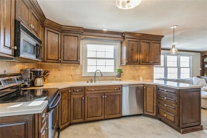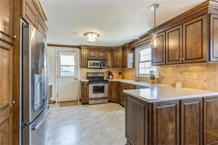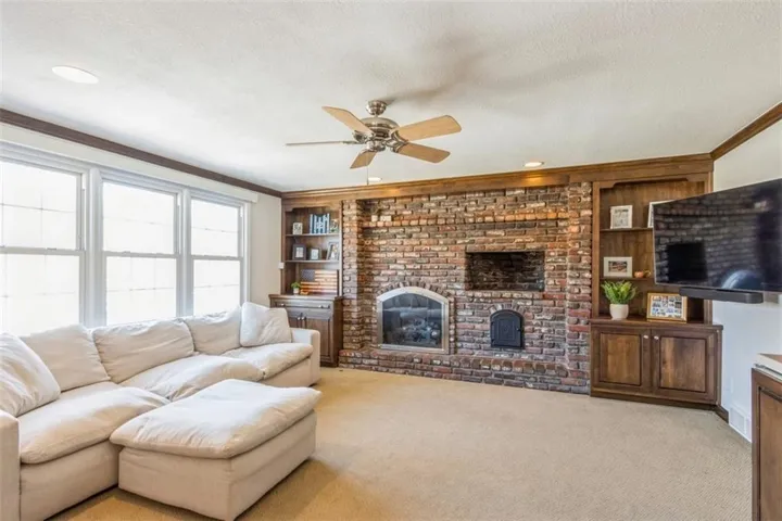 +"PublicRemarks": "Head up Village Drive from the Prairie Village shops, the very heart of this unique and bustling community, and fall in love with this anything-but-average ranch home. Double driveway and meticulous landscaping. True entryway opens to a large formal living room with fireplace and large picture window overlooking a gorgeous backyard complete with views of Porter Park. Built-in dining feature in the dining room plus sconces offer charm and warmth. Expanded kitchen with plenty of cabinetry, pantry with pull-out drawers, stainless appliances, dry bar/serving area with ice maker and beverage fridge opens to the cozy family room featuring a beautiful masonry fireplace and hearth. Designated office with french door. Bedrooms are generous in size and offer notable closet space. Primary has double closets. Finished lower level with large rec room, bedroom with egress window offers natural light, non-conforming 6th bedroom functions as a home gym, full bath and huge storage area. Large paver stone patio with built-in gas fire pit extends easily into the oversized lot with full privacy fence and in-ground sprinkler system. New gutters and gutter covers in place. Clean and organized garage shows versatility: parking, storage, workshop, etc. Recessed lighting and newer windows throughout. Maintenance-free siding and 1 year old roof! Walk out your front door and you're just steps away from the Prairie Village shops, walk out your back door and you're at Porter Park. Schools, walking trail, churches are all just a short, beautiful walk or bike ride away."