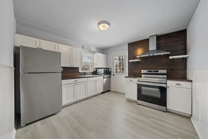 "LongDescription" => "Kitchen with stainless steel appliances and wood finish cabinetry"