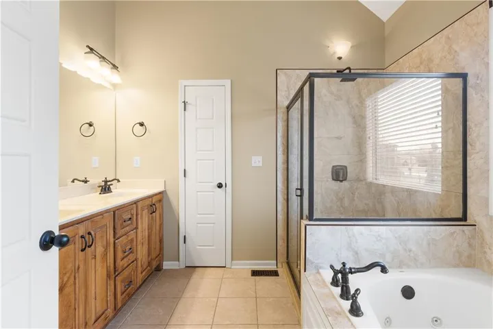 "LongDescription" => "Full bathroom with vanity, tile walls, plenty of natural light, and dark wood-type flooring"