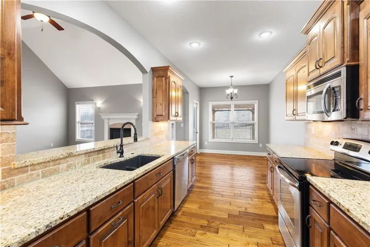 +"PublicRemarks": "Immaculate Three bedroom / Three full bathroom home located in the desired Cayhill subdivision. Soaring ceilings and beautiful hand scraped hardwood flooring throughout most of main. Formal dining room could be used as an office or playroom right off the kitchen and livingroom. Kitchen has custom cabinets, granite countertops, stainless appliances, and pantry. Owners suite features tray ceilings, jetted tub, tile shower, and a walk-in closet. Main floor laundry room. Family room downstairs with wet bar for entertaining. Large composite back deck overlooks the fenced yard. Oversized garage 23 x 31 & additional storage room that could be used as a gym or converted into a non conforming 4th bedroom with minimal construction. You do not want to miss this well cared for home. Easy access to Whiteman AFB. Call today to schedule a showing."