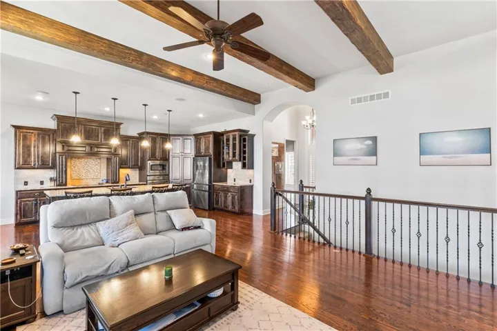 +"PublicRemarks": "Spacious 4-bedroom, 3 full bath home tucked into a quiet cul-de-sac! Enjoy fresh exterior and interior paint, newer hardwood floors throughout, vaulted ceilings, and a finished lower level perfect for entertaining—complete with a 4th bedroom. Step outside to a walkout backyard featuring an incredible outdoor living space. Situated on a generous corner lot with easy access to a nearby walking trail. Just minutes from Mahaffie Elementary and located near Olathe’s growing amenities. Come see it for yourself!"
