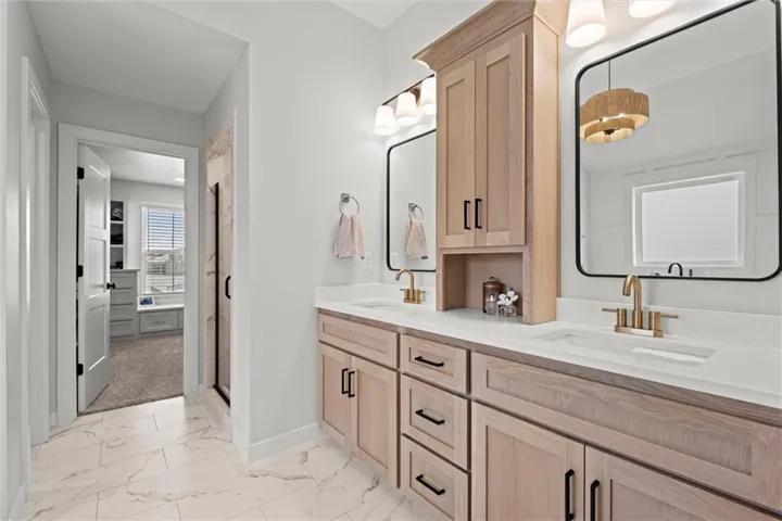 Upstairs, you'll find all four generously sized bedrooms and a convenient laundry room. Two bedrooms share a stylish Jack-and-Jill bathroom, while another guest bedroom boasts its own private en-suite. The luxurious master suite is a retreat of its own, featuring a spa-like bathroom with a soaking tub, double vanity, and a walk-in shower. The master closet is a dream, offering built-in dressers and ample storage space.\r\n