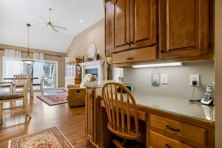 +"PublicRemarks": "This immaculate home is ready for its new owners! Step inside and be greeted by soaring ceilings, a stunning wall of windows, and a see-through fireplace that adds warmth and charm to the Great Room. The fireplace seamlessly flows into the Hearth Room, which boasts gleaming hardwood floors, vaulted ceilings, and a convenient built-in desk and cabinetry. The gourmet kitchen is a true highlight, featuring granite countertops, a walk-in pantry, and an abundance of custom-built storage. The spacious Master Suite offers a private hallway with lighted decor niche, brand-new carpet, and a luxurious en-suite bath with tile, a whirlpool tub, a walk-in shower, dual granite vanities, and a large walk-in closet. On the main level, you'll also find a second bedroom with access to its own private bath, as well as a full laundry room with a sink and additional built-ins. The finished walkout basement is perfect for entertaining, with a spacious family room, wet bar/rec area with an oven, luxury vinyl tile flooring, and two generously sized bedrooms. The basement also includes a full Jack-and-Jill bath, a half bath, and plenty of storage space, plus it’s stubbed for a second laundry room. Step outside to the back deck and patio, where you can relax or entertain in the fully fenced backyard. Delight in the amenities of the neighborhood community, including swimming pools, a clubhouse, playgrounds, trails, lakes, butterfly gardens, events, sports fields, and 9 miles of wooded walking trails. This home is truly move-in ready and offers everything you need for comfortable living and entertaining!"