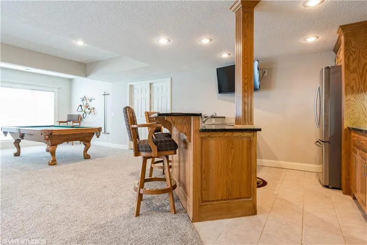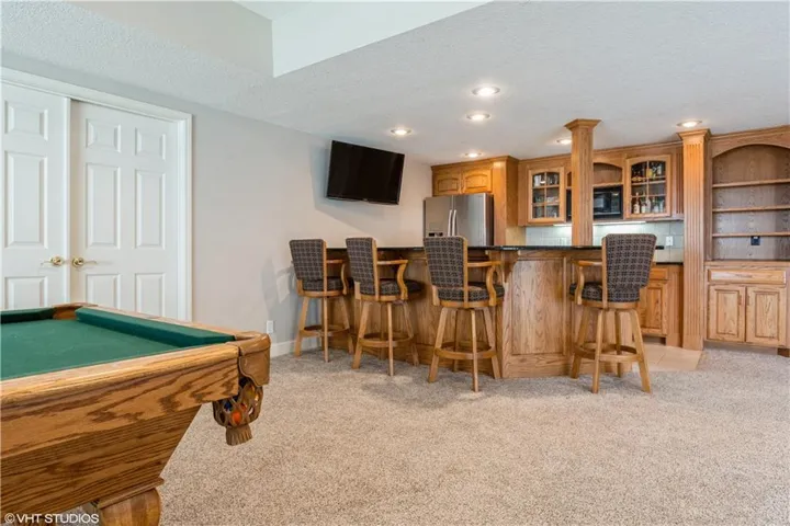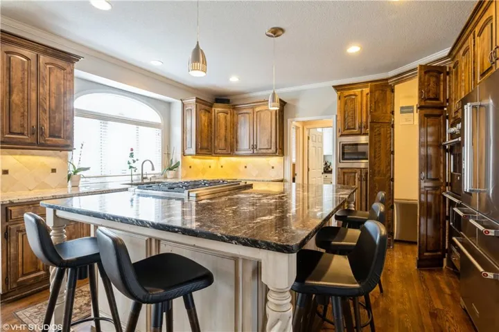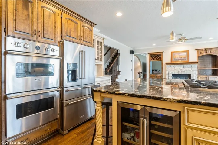 Absolutely Stunning Top to bottom! Pride of Ownership abounds with this TurnKey, Gorgeous Jed Giles 2-Story in River Ridge Farms. Completely Updated. Center Hall classic with Large Dining Room and Den/Study flanking both sides of a soaring entry! Full Viking Kitchen in recent remodel, completely Stainless, Double ovens, 6-burner cooktop, raised counter island granite, and fit for the most discerning chef. Enormous Pantry, Gorgeous cabinets, and Laundry Room. Living Room and Hearthroom separated by see-through fireplace; entertainment in both formal and equally informal applicaitons. Gleaming hardwoods throughout. Master Suite, Double Doors, sitting room, Bedroom, and completely Updated Master Bath, featuring Granite Counters, Tile, All Glass Shower, His/Her Closets, Jacuzzi Tub, and raised vanities. Generous secondary bedrooms, all secondary baths feature tile and granite tops. Basement finish is perfection, wall of windows, with custom mahogany finished wine cellar, perfect entertainment/media for all gatherings, Cheers bar, Billiards, Non-Conforming guest room, full bath, and plenty of storage. Walkout basement!\r\n