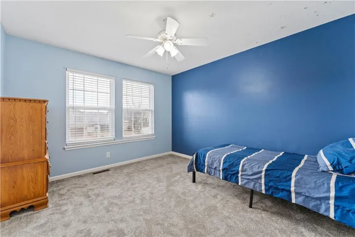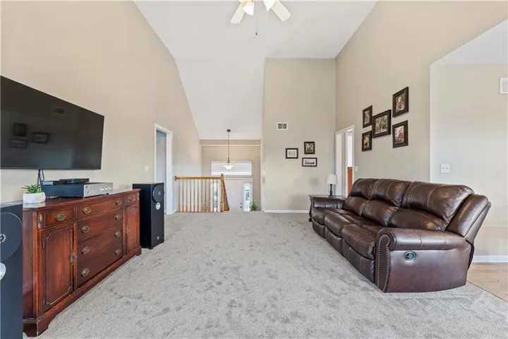 Fresh new carpet throughout! Step inside and take a half-flight up to the main living area, where you'll find a spacious living room with vaulted ceilings that flows seamlessly into the kitchen. This unique layout offers privacy, with the primary suite on one side and the secondary bedrooms on the other. Bedrooms two and three share a bathroom, and the main-level hallway includes a convenient laundry room.\r\n