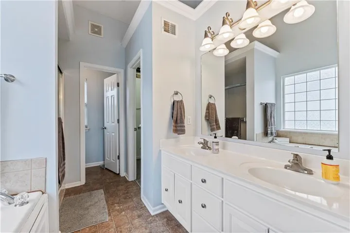 The primary suite features a double vanity, a separate shower and whirlpool tub, a walk-in closet, and a private toilet room. Step out onto the deck and enjoy a nice-sized, fenced backyard—perfect for pets, kids, or entertaining.\r\n
