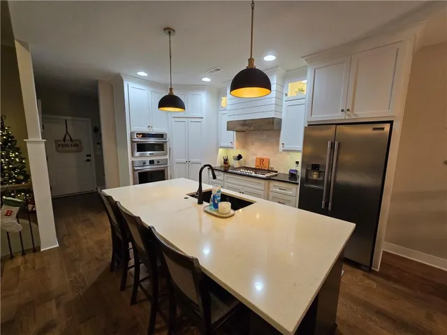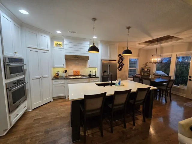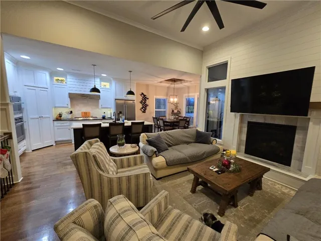+"PublicRemarks": "No need to travel when you live here! If you ever imagined having a home with all the fun amenities! You have a 20 x 40 inground pool with privacy on all sides. You have a hot tub. You have a private dock with lift walking distance to your home but not all the noise and lack of privacy from actually backing to the lake. A 22 feet pontoon is available to buy with the house as well! The home is a well equipped reverse 1.5 story on a .71 acre private lot. You have no neighbors behind you and lots of space between the homes. Lots of landscaping has been planted to gain you privacy while you entertain in your private backyard. The home has 2 bedrooms and 2.5 baths up and 2 bedrooms and 2 baths in the lower level. You also have a private office and exercise room in the lower level. The great room is open to the kitchen with 11 feet high ceilings, huge fan and a gas fireplace. The master looks out to the pool with a door to the deck and barn door to the bathroom. The master bathroom has 2 vanities, shower, sep toilet room and heated tile floors. The closet is spacious with lots of hanging space and separate drawer units. The 2nd main floor bedroom has hardwoods and a large bathroom with a tub/shower - your guest do not need to share their bathroom because there is an additional 1/2 bath located off the foyer. The kitchen has a large island, gas cooktop and plenty of storage. The large walk- in pantry has a 2nd oven and sink making a great prep kitchen or coffee bar! The lower level has luxury vinyl plank except in the 2 bedrooms. One bedroom has a giant walk-in closet and a bathroom with double vanity and tub/shower. The 2nd bedroom has a bathroom that can also be accessed from the rec room to use as a pool bathroom. You won't believe the backyard! The pool is the size of a lot of subdivision pools and is heated! You also get a hot tub and lots of patio space. part of the yard is fenced for the pool and play are. Did we mention your own putting green!"