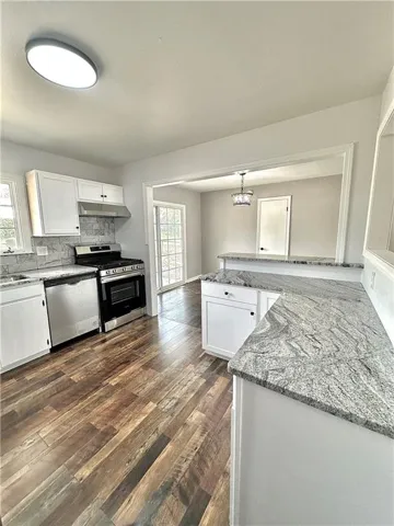 +"PublicRemarks": "Renovated Ranch! Newly Refinished Hardwood Floors throughout! Newly Painted exterior and interior. Brand NEW Stainless Steel Appliances and Granite Countertops. NEW NEW NEW! Kitchen is open to the Dining Room and has a "pass-thru window" to the living room. All NEW Light fixtures. Both bathrooms COMPLETELY updated with ceramic tile, NEW vanities and fixtures. Dedicated Laundry Room with herringbone tile. Finished Basement with 2nd Living Room/Rec Room. NEW Deck in the large fenced backyard. Storage Shed. Clean, spacious garage. Close to Highways, shops & restaurants. Don't miss this one! Nothing left to do but move in!"