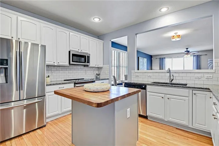 +"PublicRemarks": "Beautifully maintained ranch home nestled in a prime location! Offering nearly 1,900 sq. ft. of main-level living space, plus a full lower level ready for your personal touch. Thoughtfully updated throughout including interior paint, an updated kitchen, new roof and a new A/C. The open-concept floor plan features a formal dining room, a bright and inviting living room, and a dedicated office space. The spacious primary suite boasts a private ensuite bath, while a secondary bedroom on the main level provides additional flexibility. The beautifully updated kitchen showcases granite countertops, a butcher block island, and stainless steel appliances, making it both stylish and functional. Step outside onto the deck, where you can relax and enjoy views of the expansive patio, all surrounded by mature trees and beautiful landscaping for privacy. Offering the convenience of one-level living and easy access to highways, grocery stores, and restaurants, this home is the perfect blend of comfort and accessibility!"