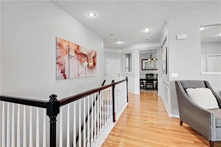 The main level features a fully remodeled kitchen with custom cabinetry thoughtfully designed with pull-out drawers for easy access. The kitchen opens seamlessly to the family room, creating a spacious and inviting gathering space. A formal dining room is perfect for family gatherings and special occasions, while the formal living room adds flexibility for entertaining. Also on the main level is a dedicated home office that anyone working from home will love, complete with a wall of built-in cabinets and shelving. Upstairs you’ll find the primary suite along with three additional bedrooms. The primary suite includes a generous closet plus a bonus room that works perfectly as a second office, dressing room, or additional closet space—you truly have to see it to believe it. The finished walkout lower level offers a third living area with a walk-up bar, ideal for movie nights, popcorn, and snacks, and provides easy access to the private outdoor setting. A super-sized non-conforming fifth bedroom adds incredible flexibility for guests, a gym, hobby room, or additional living space. This home has seen many updates, including newer carpet approximately 1.5 years old, HVAC, a kitchen remodel, windows, and roof, surround sound in the great room, WIFI garage door opener (My Q ) and a programmable thermostat. \r\n