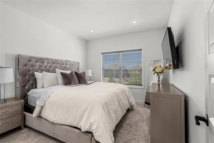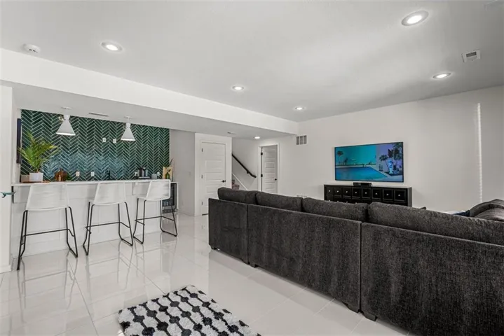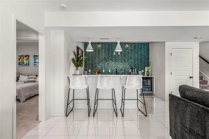 • LOWER LEVEL: Fully finished entertainer’s dream! Includes 3 bedrooms and a full bath (3rd bedroom is massive and could also be a home office, gym, gameroom—you decide!). Elegant tile floors, a custom wet bar w/ granite countertops & bev fridge make this space perfect for hosting. Walk out to your private backyard oasis!\r\n