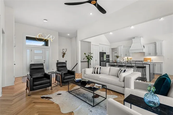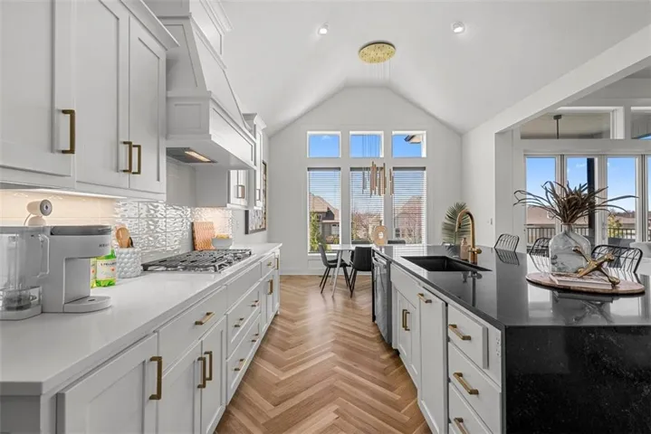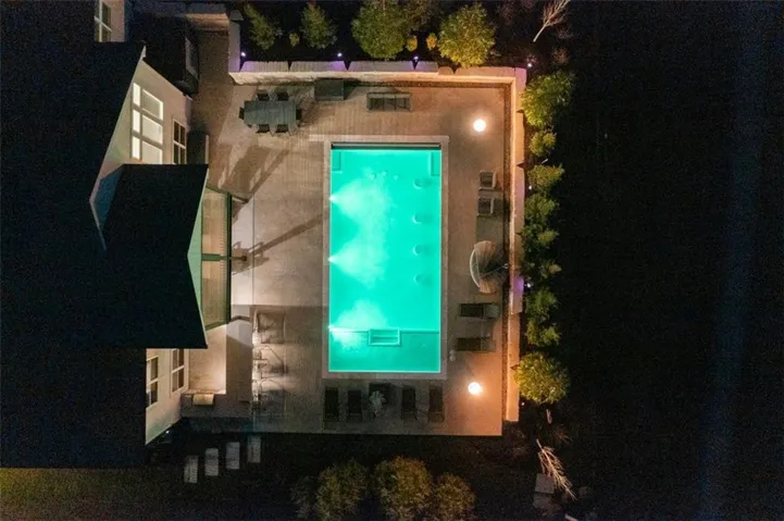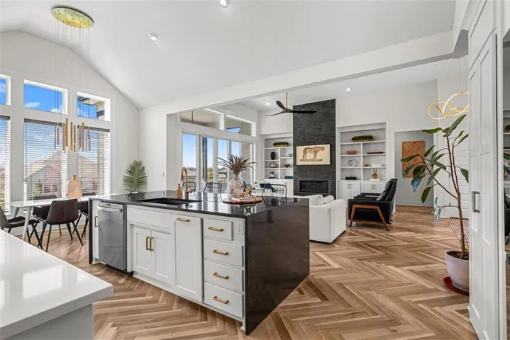 • CHEF’S KITCHEN: Spacious, modern kitchen w/ ample counter space & storage. Features include an oversized Quartz island, granite countertops, large walk-in pantry, 5-burner gas stove & new Samsung Flex Refrigerator w/ AI Vision. The kitchen overlooks the open living room w/ a striking floor-to-ceiling gas fireplace. Accordion doors open to a fully screened-in porch w/ electronic sunshades, overlooking the pool.\r\n