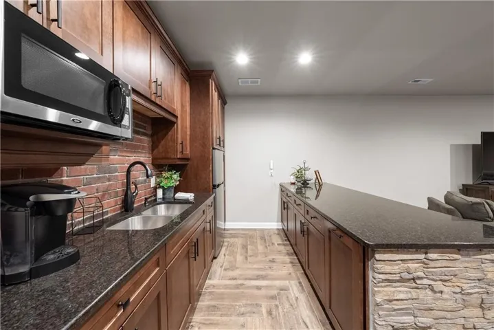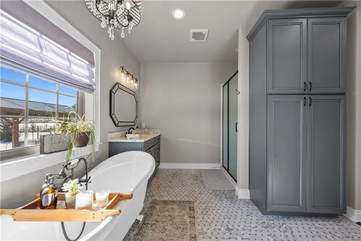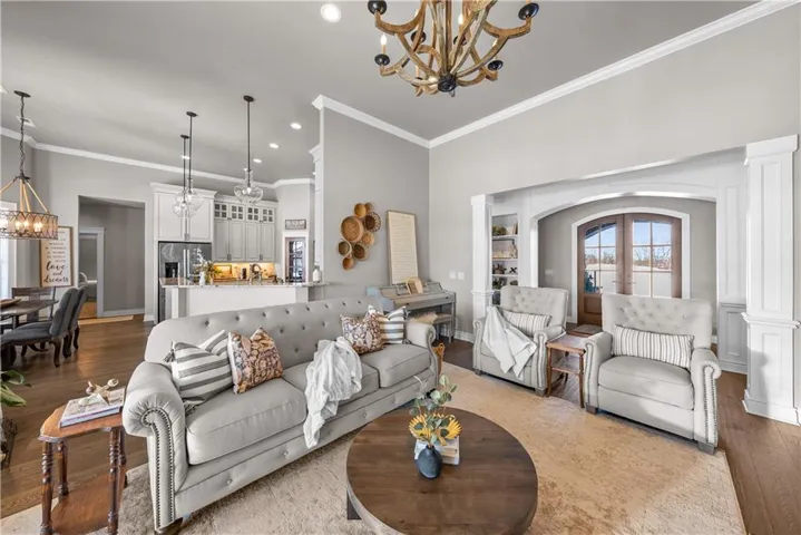 +"PublicRemarks": "Come explore the award-winning Shea II Ranch by DCB Homes! This 4-bedroom, 3-bath beauty features a striking new front porch elevation and an inviting open layout designed for modern living. The main level impresses with a vaulted ceiling spanning the Great Room and Kitchen, creating a bright, airy feel. The kitchen offers abundant cabinetry, a large island, built-in appliances with a gas range, and a walk-in pantry. A spacious dining area is a buyer favorite that opens to the back deck—perfect for entertaining. The primary suite features a walk-in shower, freestanding tub, double vanities, and a generous walk-in closet. Two additional bedrooms and a full hall bath are conveniently located on the opposite side of the main level, along with a laundry attached to the Primary and mudroom. The finished Lower Level includes a large rec room with bar, fourth bedroom, third full bath, and two large storage areas. A 3-car garage completes this fantastic plan. **This home is at the PRE-CONSTRUCTION phase. Photos are of a similar home. Taxes are estimated.** Lakeview Ridge is a new build community just west of Lake Olathe with great homes started and fantastic lots available. POOL coming in 2027. You can get to the neighborhood off of Dennis & Houston with easy access from K7 or coming from Lakeshore. Our Sales Office is located 14271 Houston. Our development is right next to Lake Olathe and neighborhood feeds into Clearwater Creek Elementary, Oregon Trail Middle School and Olathe West High School."