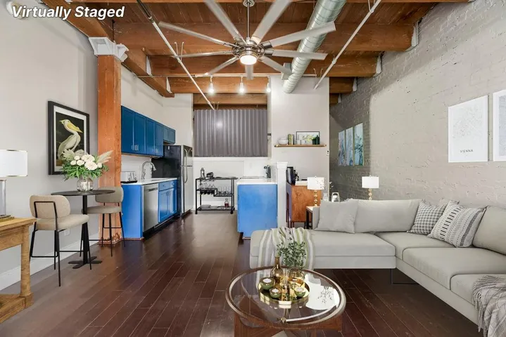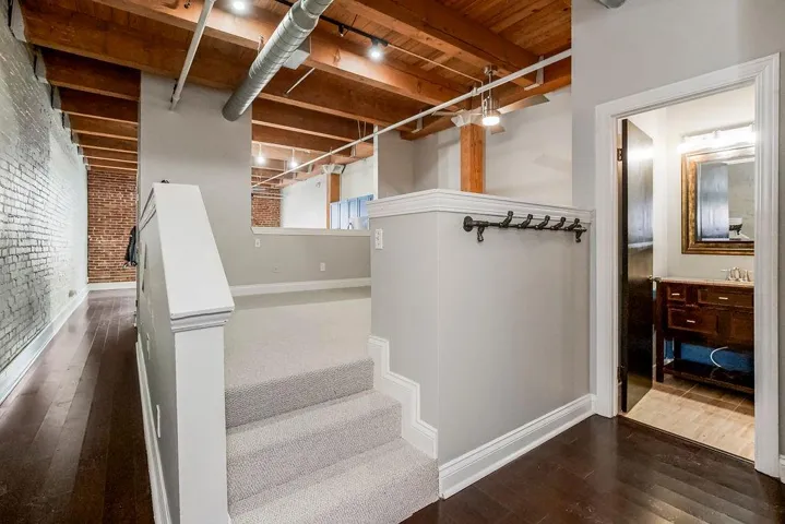 +"PublicRemarks": "What a great Opportunity to live in the historic Garment District downtown! 700 broadway at SOHO is an 1800's building that was converted to loft living approx 15 years ago. This building is both VA and FHA approved! This 4th floor loft has a fantastic view overlooking broadway, private parking (at additional cost) & VERY convenient access to highways! Great, open floor plan designed with distinct living, sleeping, & working zones for optimal use of space. Rich Brown, Engineered wood floors throughout! Light & bright Full interior paint! NEW CARPET with upgraded pad! These new updates accentuate the impressive industrial loft aesthetics of high ceilings, heavy timber beams, exposed brick walls, industrial style ceiling fan and iron racks! The raised and semi open bedroom is spacious & houses the added combo washer/dryer. Curtains could be used to provide more privacy if desired. (See virtual staged photo) Large master closet & bathroom are conveniently located next to bedroom. The bathroom features a jetted tub & mixes modern finishes with the charm of a rustic timber beams. Recently updated galley style kitchen features custom, shaker style cabinetry in trendy blue with quartz countertops, & stainless appliances. Nook outside the kitchen wall can be used as an office space or dining area. Living room is full of natural light. This loft is move in ready. Staged photos are provided to show how charming this loft is! HUGE BONUS: The Storage unit is right outside the front door! No need to go all the way to the basement for stored items! Amenities of the building include a club room w/TV area, billard & bar area, fitness room, business center, laundry and theater room. The best of downtown KC awaits right outside your front door! Enjoy dining & nightlife, the River Market, or hop on the streetcar to discover hotspots in neighboring Areas. Quick close available. Come see it today to start enjoying downtown living! Note: Possible VA assumable loan!"