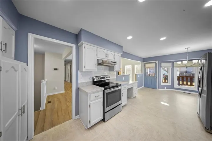 +"PublicRemarks": "Awesome home that is ready to move right in! You'll love this 3 Bed 2.5 bath raised ranch house that provides 1906 sq. ft. of living space and a 2 car garage. Seller has taken good care of this home as you can see the minute you enter the home. Vaulted Great room with fireplace plus the lower level family room. Wonderful open kitchen with large bow-bay dining area, updated counters & appliances plus first floor laundry room off kitchen with plenty of storage. This house has new flooring on first floor. Step outside to discover the fenced flat backyard, providing both privacy and a safe space for recreational activities. The covered deck offers a perfect setting for entertaining guests or simply enjoying a quiet evening outdoors."