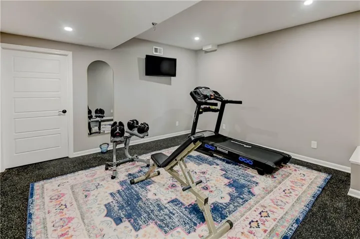 The HUGE walk-out finished basement is an entertainer's paradise, complete with a bar, ADA doors, a steamed shower, and ample space for gatherings. An 80” television in the basement stays with the property, enhancing your entertainment experience. \r\n