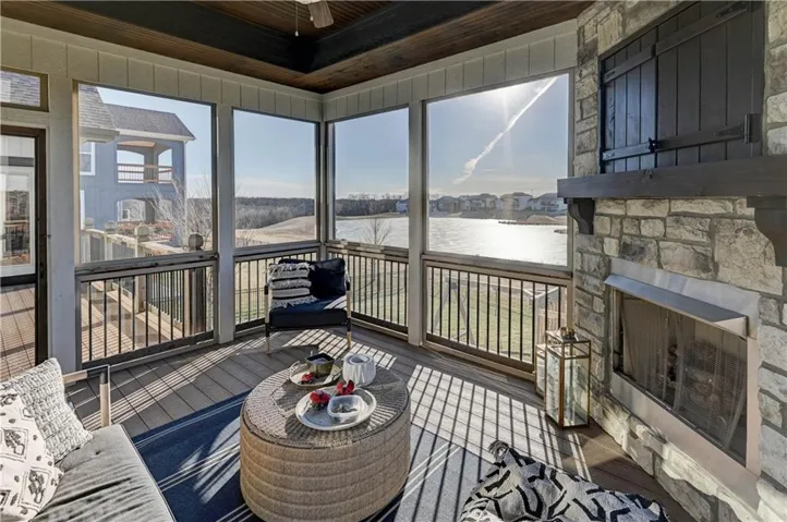 Enjoy the stunning views from the screened-in porch with a cozy fireplace, or relax on the patio below, offering even more outdoor living space. This home is enhanced with premium upgrades, including custom drapery throughout, a Sonos sound system on the main level, patio, and basement, a metal fence, custom blinds, a sprinkler system, LV wiring, and extensive landscaping.\r\n