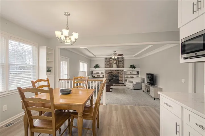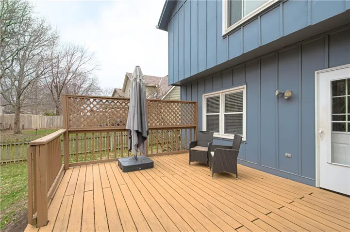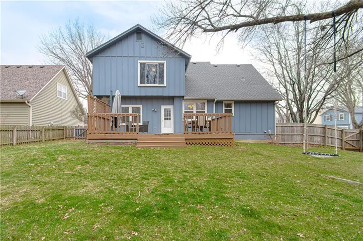 +"PublicRemarks": "Welcome Home!! Just move right in! This beautiful, well loved 4-bedroom, 3.1-bath, 2-story home perfectly blends modern updates with timeless charm. Warm & inviting atmosphere from the moment you step inside! The beautifully updated home! Kitchen features newer painted cabinets, sleek hard surface countertops, newer tile, a pantry with pull-out shelves, a movable island, & stainless steel appliances & LVP plank flooring! Its open-concept layout seamlessly connects the kitchen, dining, and living areas—perfect for entertaining or everyday living. The Great Room is cozy yet inviting! Spacious & complete with built-in shelves & brick fireplace surround that adds character & warmth. The roomy primary suite is filled with abundant of natural light, creating a relaxing haven while overlooking the treed backyard. It also boasts a custom-designed closet! The primary bath offers dual sinks, updated hard surface counters & LVP flooring. The fourth bedroom, located at the top of the stairs on the second floor, is set back for added privacy, making it a perfect retreat for guests or a home office The first-floor laundry room adds convenience, functionality & storage. The finished lower level features a fantastic rec room with a full bath, including a whirlpool tub and extra storage. This versatile space can double as a game room, media room, workout area, or whatever suits your lifestyle needs. Home is situated on a desirable corner lot leading into a cul-de-sac. This home provides an incredible outdoor retreat with an expansive deck and a huge fenced yard—ideal for relaxing or hosting gatherings. Besides perfect for morning coffee or evenings relaxation! Pride of homeownership!! Conveniently located near Countryside elementary school - walking distance. this home also feeds into the highly sought-after Olathe School District. Don't miss this opportunity to make this beautiful home yours!"