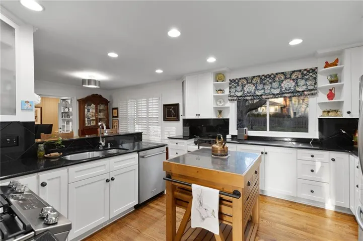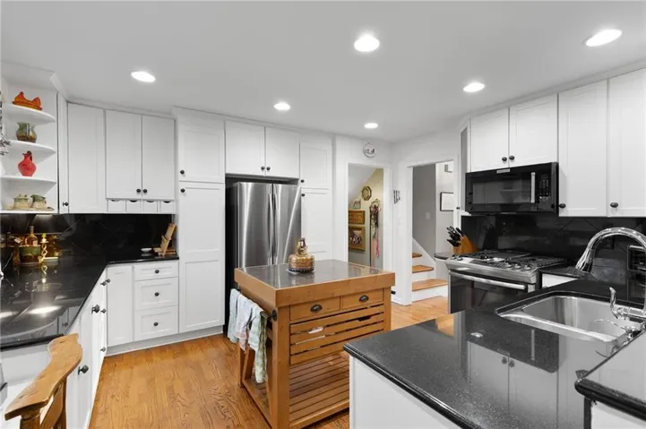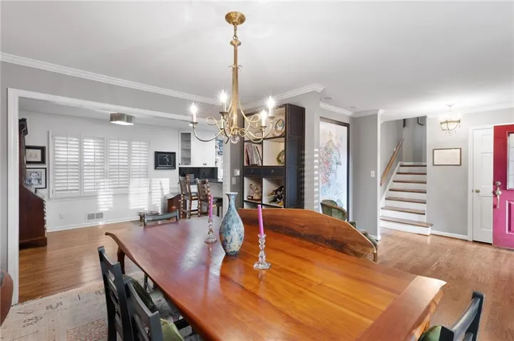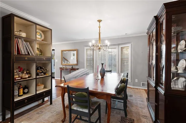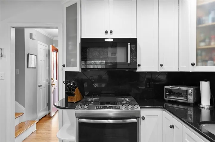 +"PublicRemarks": "In the heart of Corinth Hills, this beautifully remodeled home blends classic charm with modern updates. Step inside to an expansive foyer, perfect for welcoming guests, which seamlessly flows into the formal dining room adorned with plantation shutters. Straight ahead, the kitchen is a chef’s dream, featuring stainless steel appliances, a gas cooktop, black granite counters and backsplash, a gooseneck faucet over the undermount stainless sink, and a raised breakfast bar with room for stools. Crisp white custom cabinetry and a spacious pantry complete this elegant space. A picturesque window offers views of the back paver patio, while the adjoining breakfast area, also with plantation shutters, leads to the inviting living room. Here, a masonry fireplace, pegged hardwood floors, painted wood paneling, and built-in bookshelves create a warm and welcoming atmosphere. Beyond the living room, the all-season sunroom boasts tile flooring, skylights, and shades, with access to the beautifully landscaped, fenced backyard. Upstairs, the owner's suite is a private retreat with a walk-in closet and a stunning renovated custom bathroom featuring marble basket weave flooring, a luxurious marble tile shower surround, and a quartz vanity. Two additional bedrooms with hardwood floors and blinds share an updated hall bath with a tub/shower combination. The third floor offers an expansive fourth bedroom with decorative carpeting and a large walk-in closet. The lower level provides a cozy family room, office space, and laundry area. The garage includes a rear door for backyard access. Extensive updates include new HVAC, roof, interior paint, light fixtures, crown molding, window treatments, and plumbing and electrical upgrades. Located on a mature tree-lined street, this home is within walking distance of Corinth Square’s shops and restaurants, offering a truly exceptional lifestyle in a sought-after location."