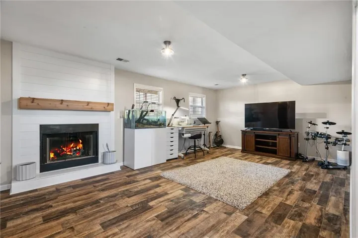 "LongDescription" => "Kitchen featuring stainless steel appliances, dark wood-type flooring, ornamental molding, light stone countertops, and two tone cabinetry"