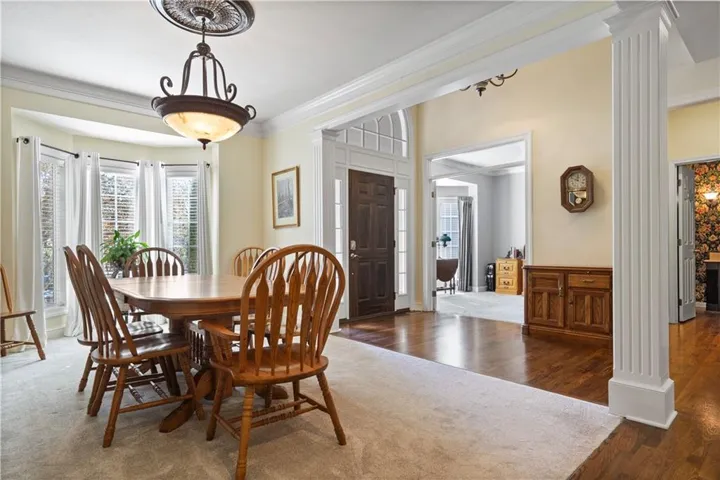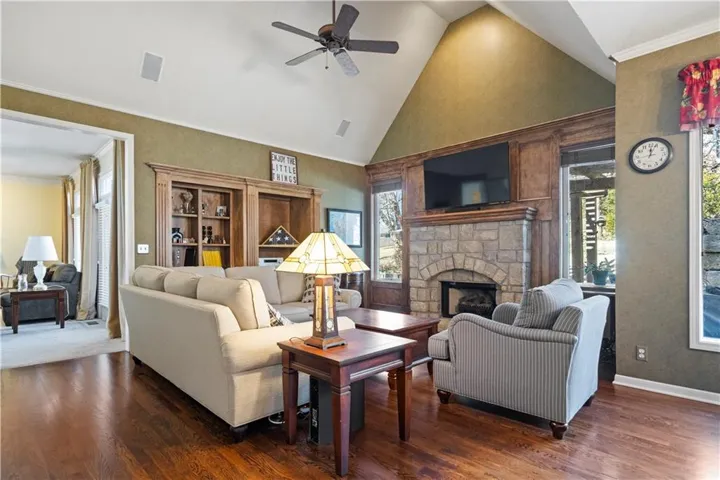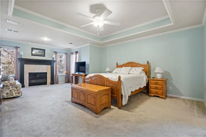 At the heart of the home is a large, warm hearth room, designed to be both inviting and cozy, perfect for gathering with loved ones. Adjacent to the hearth room is a chef’s kitchen, featuring a spacious walk-in pantry, full-size fridge and freezer, and a professional-grade gas range. Effortlessly entertain guests with the help of the built-in butler’s pantry, and enjoy the practicality of a mudroom with abundant storage. The laundry room, with its ample cabinetry, sink, and laundry chute, adds a perfect blend of convenience and functionality.\r\n