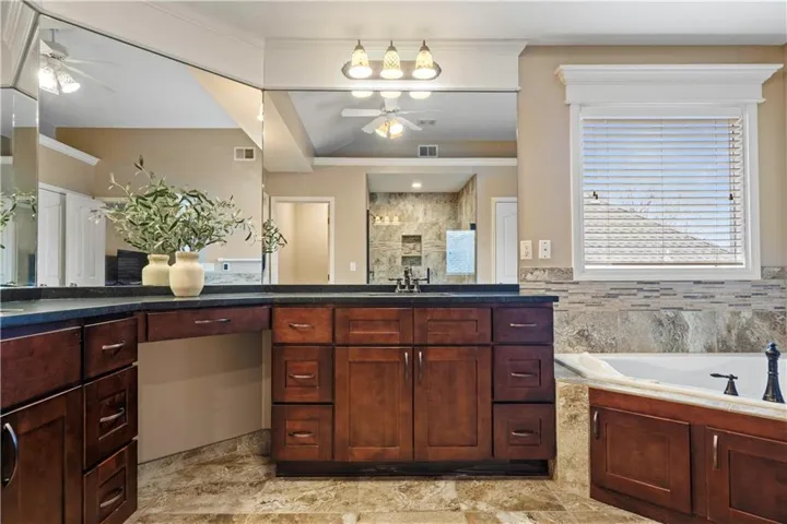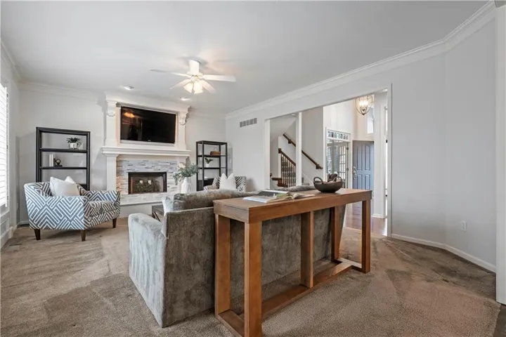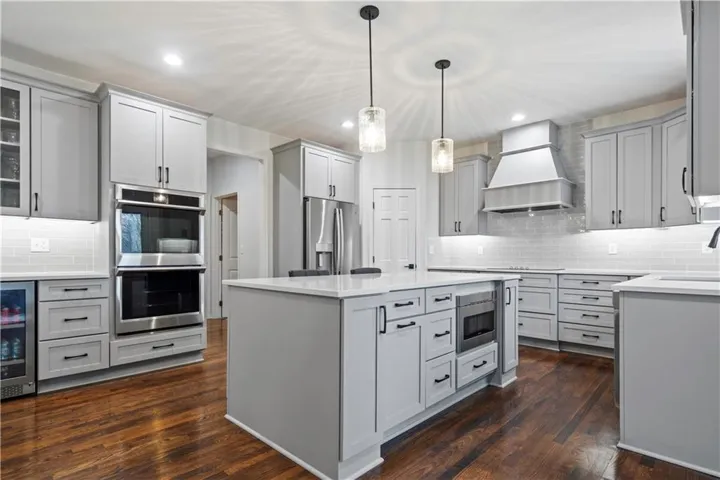 Welcome to this beautifully updated 5-bedroom, 4.5-bath home with a finished daylight basement! Designed for comfort and style, this home boasts an open and inviting floor plan perfect for modern living. The main level features a fully remodeled kitchen (2023) with brand-new appliances, a large quartz island, custom cabinetry (including a pull-out spice rack and utensil organizer), a double oven and a beverage fridge—all flowing seamlessly into the cozy hearth room with a gas fireplace. You'll also find a spacious family room, a formal dining room, and a private office with elegant French doors. Special upgrades include newer windows throughout, plantation shutters, updated lighting, a remote-controlled blind for the large front window, newer carpet, and two fireplaces. Laundry room on main level indluces sink. Upstairs, the primary suite is a true retreat with a large walk-in closet and a luxurious en suite, beautifully remodeled in 2019. Three additional bedrooms offer walk-in closets and high ceilings, with a Jack-and-Jill bath between two rooms and a private bath for the fourth bedroom. The finished basement is perfect for entertaining, featuring a fifth bedroom, full bath, expansive living space, built-in desks, and surround sound. \r\n