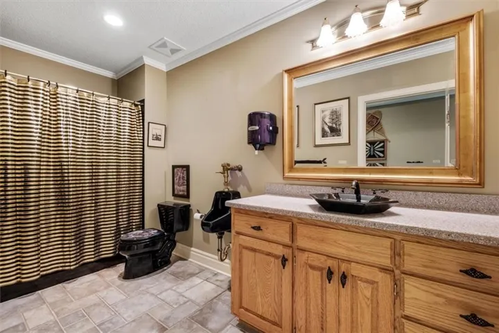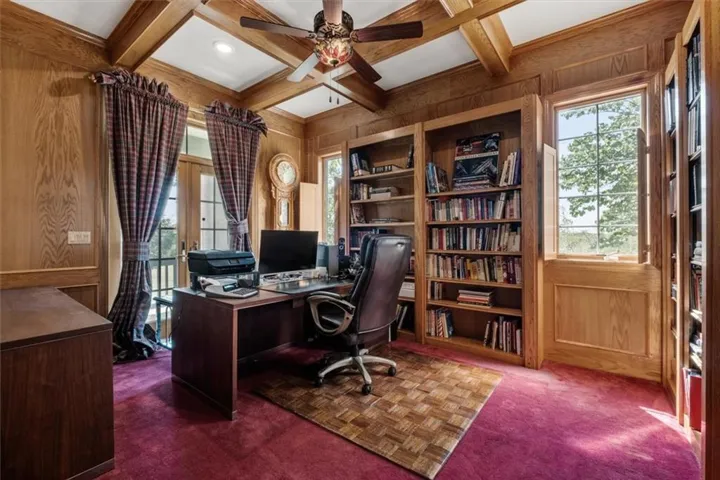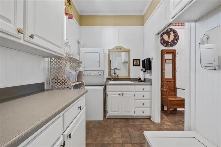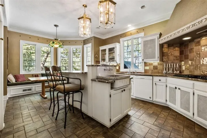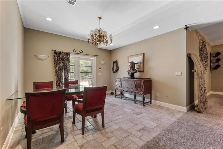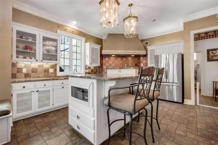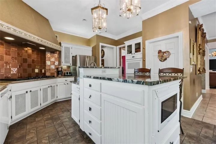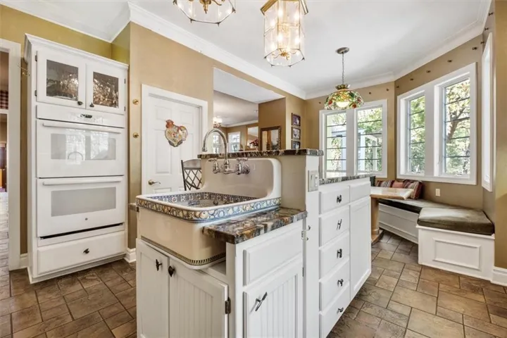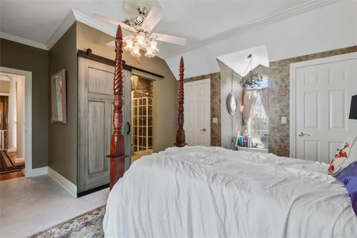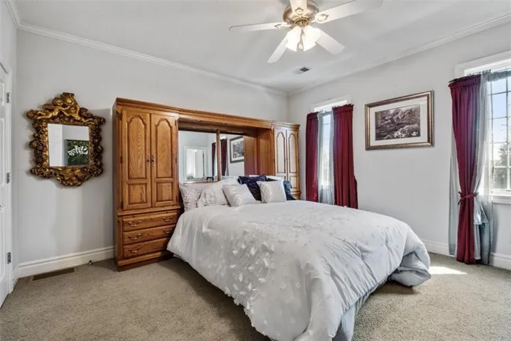 +"PublicRemarks": "Southern Elegance! Room after room and detail after detail of Southern Elegance. Like nothing else on the market and very unique! Indoor window shutters, leaded glass master bedroom door, high 9-10 foot ceilings, 2 fireplaces, Koehler faucets, Andersen windows, geothermal heating and cooling, European lighting, 2 storm shelters, 2 laundry areas. This kitchen has a copper backsplash, granite counter tops, and very uniquely designed sinks. Massive backyard with close to 100 walnut trees to enjoy the outdoors or the expansive views of country side and a pond with fishing dock in the front! New deck off the back and a new main floor bedroom for main floor living! 60 x 40 barn with concrete flooring and electricity. New carpet in basement 2023, new hot water 2022, new A/C in 2019, new exterior paint 2021, and new hail resistant roof in 2021! This home also has a security system and sprinkler system. You have to see to believe!!!"