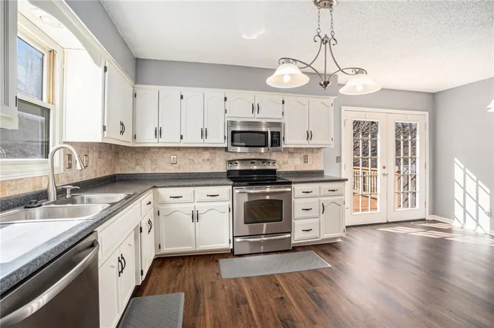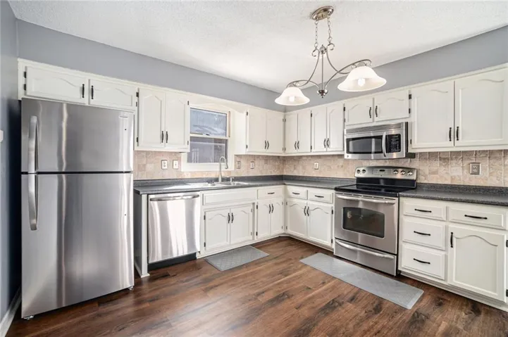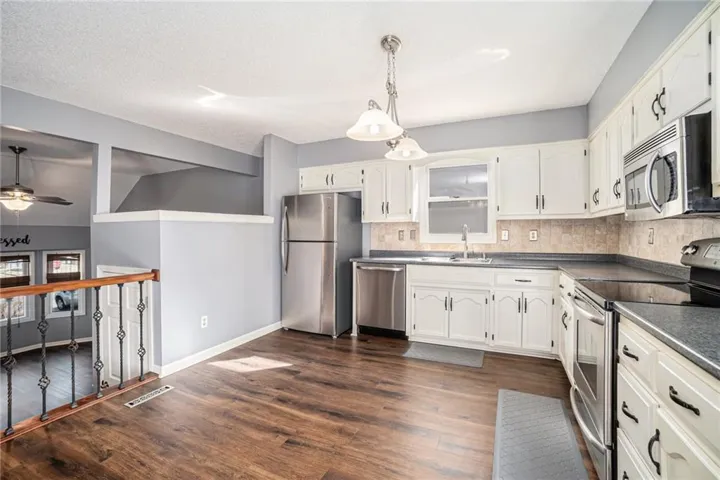 +"PublicRemarks": "AVAILABLE NOW! This is the ONE! Updated and ready for you to come on HOME! Three bedrooms with TWO full baths PLUS a spacious living room and LL rec. room! Vaulted ceiling, large bay window and floating shelves in the living room. Recent paint and newer durable easy-to-clean Luxury Vinyl Plank flooring on the main level, porcelain tile downstairs. A versatile and open floor plan to the large kitchen/dining and main level bedrooms. Stainless kitchen appliances (NEW FRIDGE INCLUDED) loads of counter space and white cabinets. The spacious owner's suite features a large walk-in closet and thoughtfully updated flooring and shower in the ensuite bath. Well appointed second and third bedrooms PLUS a den/rec room in the lower level. The utility room is great for additional storage or workout equipment. TWO CAR GARAGE. Pride of ownership shows everywhere: Newer roof (2 yrs), HVAC (7 years), flooring, NEST thermostat, wrought iron staircase spindles, REFRIGERATOR (2025)/WASHER AND DRYER STAY! French doors welcome you to the fully fenced back yard with a beautifully appointed deck to enjoy Spring mornings and Summer afternoons. Includes a firepit for relaxing and entertaining! The perfect playground for pets as well! Convenient location close to MO-169 with easy access to downtown Kansas City, Smithville and I-29/I/35."