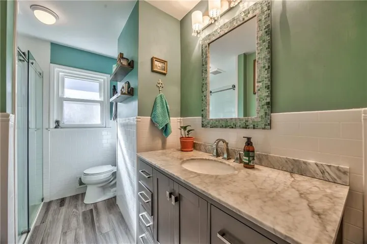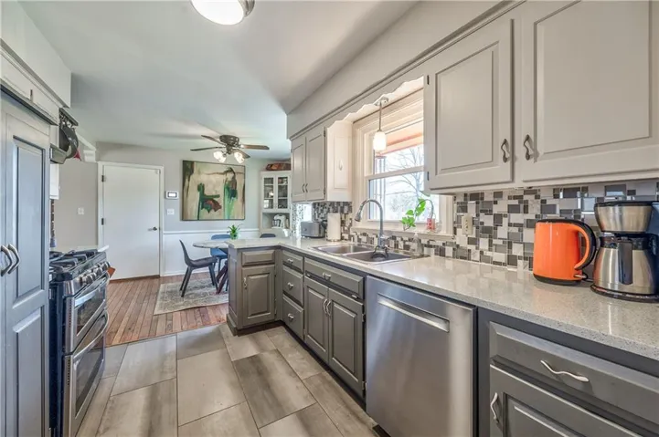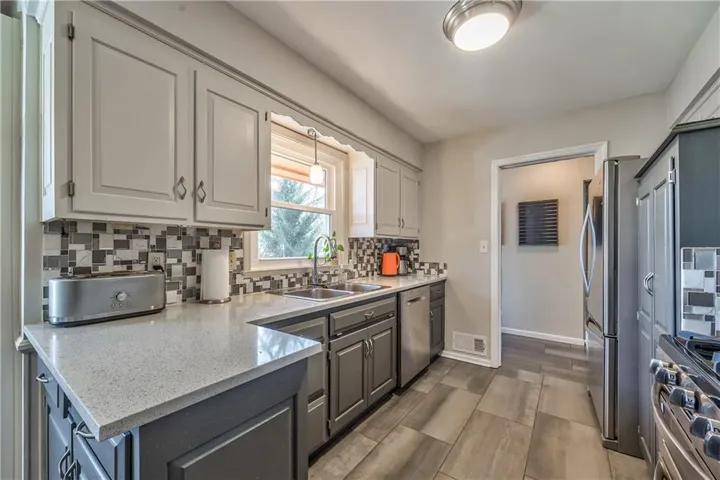 +"PublicRemarks": "This charming PV ranch, lovingly cared for by its second owners, is updated and move-in ready! The kitchen, conveniently located near the front door, boasts beautiful quartz countertops, stainless steel appliances, a pantry, and the original, adorable corner cabinetry. A stunning wall of windows stretches across the back of the house, offering views of the spacious family room (currently used as a dining area) and a cozy living room. Both bathrooms have been thoughtfully updated. The home also features easy access to a partially finished dry basement from both inside and the garage. Outside, you'll find a storage shed with electricity behind the garage and a fully fenced backyard, complete with a French drain. Sellers are generously leaving the hot tub on the covered porch for your enjoyment. The roof is a single layer, only 10 years old, and the HVAC is about the same age, with a 200-amp electrical service. A soft, neutral color scheme flows throughout, making this home an easy choice and a perfect place to call your own!"