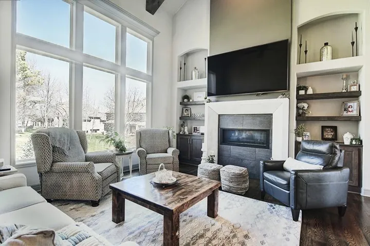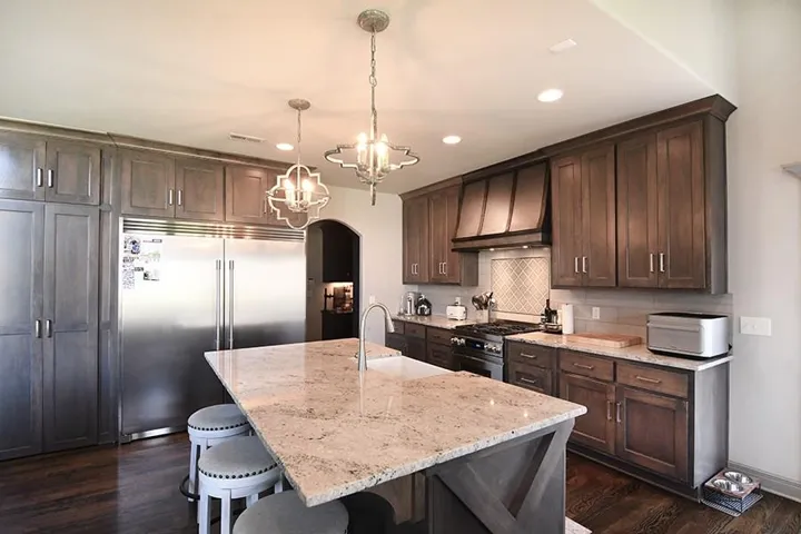 +"PublicRemarks": "Absolutely stunning home in Tiffany Greens! This spacious 4-bed, 5-bath residence features vaulted ceilings with wood beams, curved staircases, real hardwood floors, and elegant details throughout. The living room offers a cozy retreat with expansive windows, built-ins, and a sleek fireplace. Entertain in style with a wine bar, a chef’s kitchen boasting chiseled-edge granite, a new Built-in fridge, and a stone-accented breakfast nook. Step outside to a covered patio with a built-in grill, perfect for outdoor dining. The luxurious primary bath includes a standalone tub, walk-in tile shower, and new quartz counters, plus a large walk-in closet with built-ins. Additional highlights: a home office, modern lighting, and a finished basement with a bar and rec space. Style, comfort, and functionality—this home has it all!"