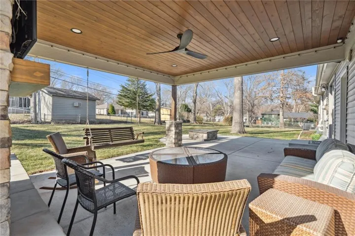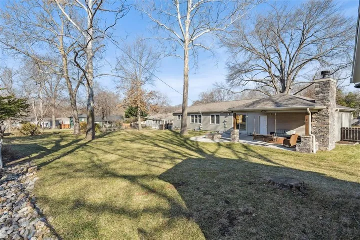 +"PublicRemarks": "This is THE ONE you've been waiting for! This lovely ranch home has been well cared for and every inch updated over the last several years. Tucked away on a quiet, tree-lined street, you'll find this expansive ranch with fully finished basement, level and fenced yard (over 14,000 sq ft; one of the largest yards in the subdivision), AMAZING COVERED outdoor patio with BOTH a fireplace and nearby gas fire pit. Beautiful lush yard with established landscaping -- and this is only the beginning! You'll enjoy maintenance-free vinyl siding, a newer roof (5 years old), newer heating and cooling (both units 2 years old), newer hot water heater (5 years), newer appliances, new windows, gorgeously-updated bathrooms. Don't miss the basement bath -- it is literally like a spa! Nothing to do but move in! Updated light fixtures, kitchen, garage doors, interior doors and hardware. The kitchen has new cabinets, granite counters, subway tile back splash, under cabinet lighting and new flooring tile. The finished basement is spectacular! The basement has the fourth CONFORMING bedroom, full beautiful bathroom, dry bar with built in wine fridge and beverage fridge and gorgeous laundry room. The basement living area is spacious and equipped with a theater screen and projector that stays with the home. This is a RARE OPPORTUNITY to own a LIKE-NEW RANCH home in the always-popular location of Nall Hills. Truly turn key-move in and start enjoying this beautiful home and the spectacular backyard and the covered patio!"