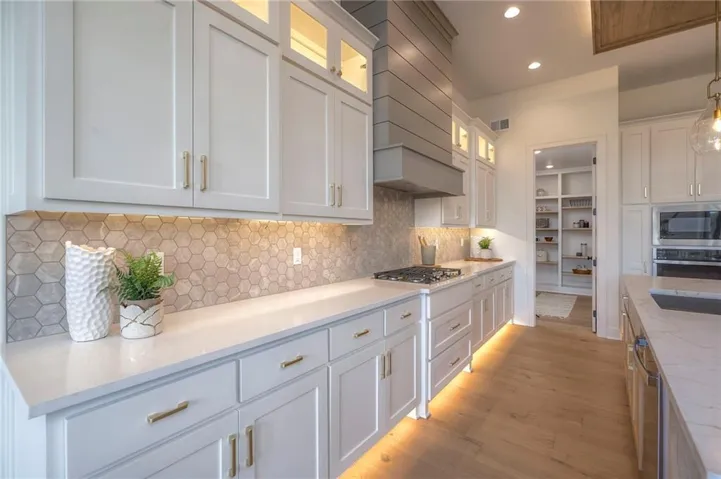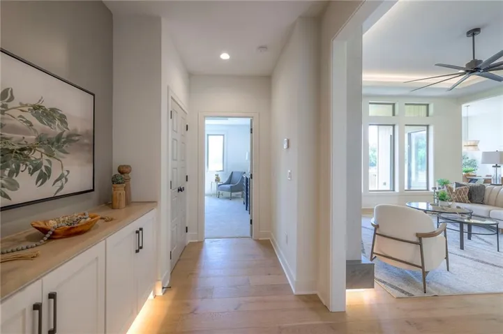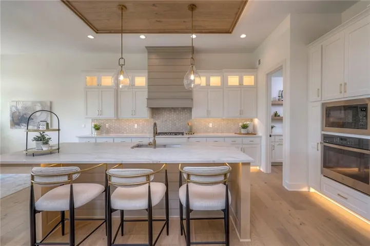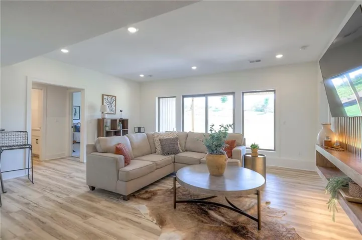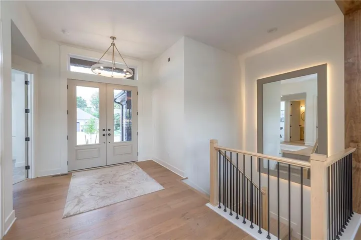 +"PublicRemarks": "Stunning and spacious Lyle Reverse plan by Bryant Ratliff with 4 Bedroom and 4 Full Baths. Large entry greats you into this open and spacious floor plan. Great room has hardwood floors, soaring ceiling and floor to ceiling stone fireplace. Kitchen features custom cabinetry, oversized island, stainless appliances, walk-in pantry, & access to huge covered deck. Large master suite with custom tiled large shower and sizable walk-in closet with access into the laundry. 2nd bedroom and full bath on main floor. Lower level features family room w/custom tv wall, bar area and 2 additional bedrooms each w/their own baths. Walk out to a patio with large yard backing to bermed greenspace. Home is located on an estate lot and includes lawn irrigation. Home is located in Woodland Trails, an outdoor lifestyle community featuring miles and miles of paved walking trails, resort style pool, playground, sports field and fishing ponds."