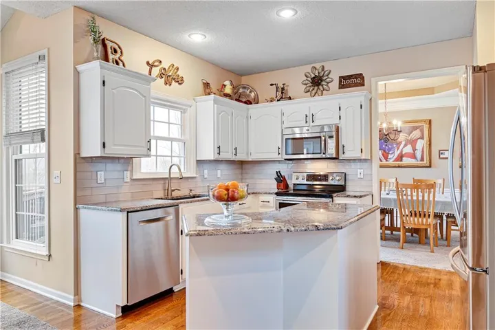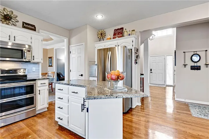 +"PublicRemarks": "Discover this stunning 4-bedroom, 3.5-bathroom former model with all the trimmings nestled in the vibrant Northwood Trails community! As you step inside, you’re welcomed by rich hardwood floors that flow seamlessly into a beautifully updated kitchen, complete with luxurious granite countertops, a stylish ceramic tile backsplash, crisp white cabinetry, and a versatile island—perfect for preparing meals or hosting gatherings with ease. This open-concept space transitions effortlessly into a spacious great room, where a striking fireplace creates a warm and inviting atmosphere, ideal for relaxing on cool evenings. Step outside to enjoy a durable composite deck, a low-maintenance retreat designed for outdoor leisure or entertaining guests throughout the year. Upstairs, an oversized master closet offers abundant storage, complemented by a generously sized hall bathroom and upstairs laundry room for comfort and convenience. The finished walkout basement expands your possibilities, featuring a sleek bar area, a full bathroom, and adaptable space that could serve as a recreation room, home office, or guest suite—tailored to your unique lifestyle. Light neutral tones throughout the interior lend a fresh, sophisticated charm, ready for your personal touch. Never shovel snow again thanks to your southern facing driveway! Situated in a mature neighborhood, this home provides access to a refreshing community pool, picturesque trails—including the Gary Heller trailhead at the back, perfect for outdoor adventures—and a serene lake that enhances the natural surroundings. Served by the esteemed Olathe School District and just minutes from shopping, dining, and entertainment options, this move-in-ready property combines modern upgrades with timeless appeal. Don’t miss your chance to own this Northwood Trails gem—schedule a private showing today and envision the life that awaits you here!"
