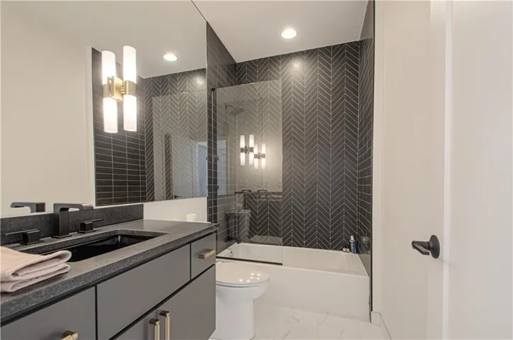 "LongDescription" => "Bathroom with vanity, a shower stall, and recessed lighting"