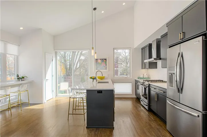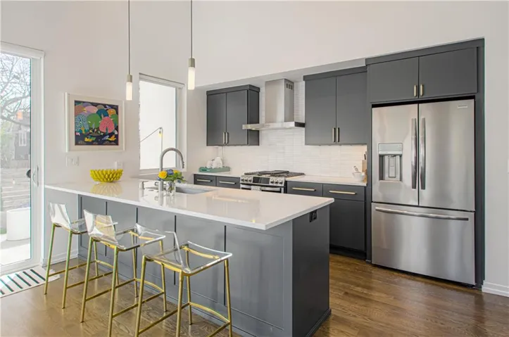 +"PublicRemarks": "Been thinking of building but don't want the headache or don't have time to wait?! Noblit-Didier 2022 Construction Ranch/Reverse 1.5 Story floor plan is ready and waiting for you in an amazing location. Vaulted ceilings, stunning floor to ceiling tiled gas fireplace, hardwood floors, open floor plan and tons of natural light streaming through tall Anderson windows on main floor make this a welcoming space for all. Kitchen features custom cabinets, quartz countertops on island and breakfast bar, Stainless Steel appliances, touch-free Kitchen Faucet + spacious dining area make entertaining, cooking and clean up a breeze. Access to back patio flows the sliding door off kitchen to a fully fenced private yard with beautiful landscape/hardscape. Third conforming bedroom in lower level has a full bathroom and family room space with built in wall shelves. Floor plans featured in Supplement section and in photos. Oversized garage could potentially house a small 3rd car, with handy storage closet is hard to find! Tankless water heater, 92% efficient furnace, stucco exterior, new water line (2022), new sewer line (2022) upgrades make this home turn key or lock/leave ready for travelers that need a home base."