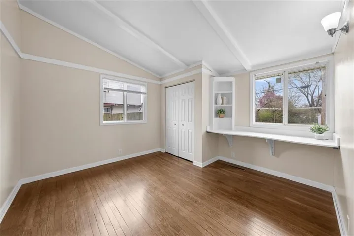 "LongDescription" => "Unfurnished bedroom with light carpet, a closet, wood walls, and ceiling fan"