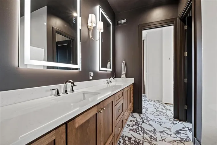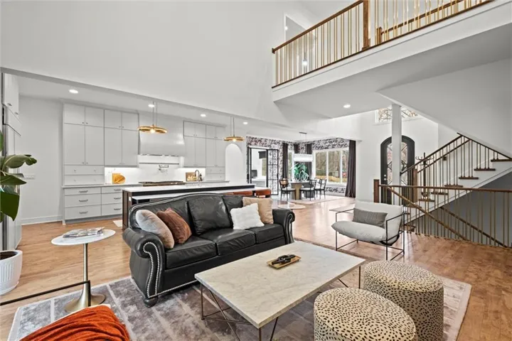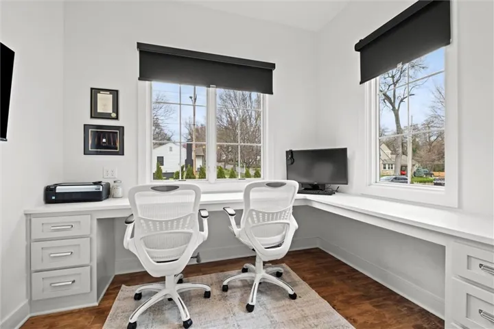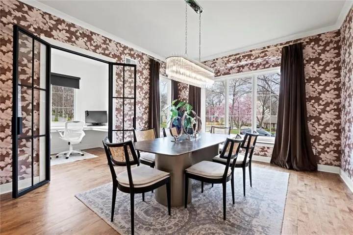 +"PublicRemarks": "Welcome to this stunning custom build in the historic Leawood District, where luxury and comfort meet. This 1.5 story residence boasts 7 bedrooms, a dedicated office, and 5.5 bathrooms offering an abundance of space for living, working, and entertaining. As you arrive the 3-car garage with circle driveway greets you, setting the stage for the 5590 square feet of living space. The chef's kitchen is a culinary dream, featuring a 6-foot island, quartz countertops, custom hood, walk-in pantry, 48" French door, subzero fridge/freezer cabinets, Cove dishwasher, Wolf microwave, range with custom hood, Elkay wall mount bottle filler, Hoszaiki under counter ice maker, plus under counter refrigerator/freezer drawers! The open floor plan seamlessly connects the kitchen to the spacious living area, highlighted by a stone fireplace and an abundance of windows that flood the space with natural light. This home is designed for ultimate comfort and convenience, with all bedrooms having their own ensuite plus a laundry room on each level, ensuring that daily tasks are a breeze. Extra loft area upstairs offers an area for a separate living space, or rec room! Fitness room plus large theater room in the lower level offer the perfect retreat within the comforts of home. Step outside to the 1/3-acre lot adorned with large trees creating a tranquil outdoor oasis for enjoying the beautiful surroundings on your private covered lanai. This homes feeds into Corinth Elementary in the Shawnee Mission School District and is close to parks, shopping, and entertainment. Don't miss the opportunity to make this exceptional property your own and experience the epitome of refined living in the esteemed Leawood historic District."