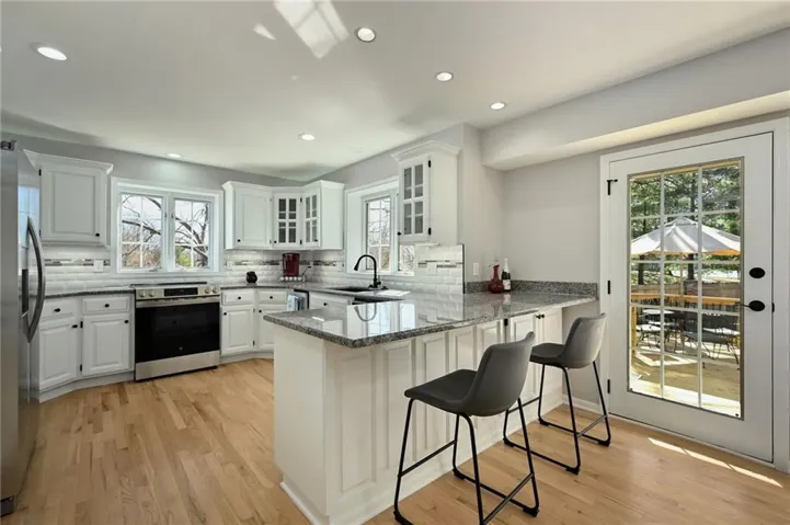 +"PublicRemarks": "This amazing, totally transformed home has it all! Even backs up to a city park. The 3-arce park has multiple tennis/pickleball/basketball courts and huge areas for children with lots of playground equipment. This beautiful two-story home offers 4 bedrooms, 4.5 bathrooms, more than 4,800 finished square feet. Main floor is all hardwood except the large mud room that is tile, and which holds the washer and dryer. The kitchen has white cabinets, granite countertops and backsplash, all new stainless-steel appliances. The large dining room is ready for company! Hearth room fireplace burns real wood, and seats plenty of family members and guests. Into the sunroom, you almost need your sunglasses! It is bright with tons of windows. Going outside there is a new deck with octagon seating area. There is a brick patio on the other side of the sunroom, great for entertaining or a hot tub. Moving upstairs, staircase has wooden end caps with wrought iron spindles and custom carpeting. The upstairs hallway and all the bedrooms are carpeted. The secondary bathrooms all have tile floors, granite vanity tops, tile showers – WOW! The master bathroom is stunning! Lighted mirrors, towel shower, granite vanity tops, grand soaker tub. In the lower level is a walkout, game room, TV room, full-size sauna, 4th bedroom and full bathroom, plus another brick patio ideal for an outdoor firepit."