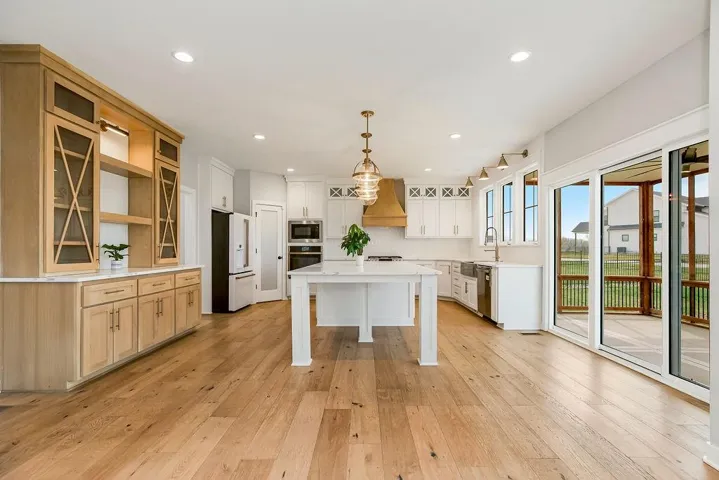 Step inside to a bright, open-concept layout with soaring vaulted ceilings and white oak wide-plank wood floors that flow throughout. The gourmet kitchen features an Expansive Sleek Table Island adorned with Quartz Countertops custom designed to offer ample working space ideal for preparation and Family/Social gatherings, Custom Fabricated Kitchen Cabinetry with Elegant Glass Door Accents, a Built -in Breakfast/ Coffee/ Bar Area, Pantry, and Top of the Line stainless appliances. This spacious home beams with an abundance of Natural Light pouring through the floor to ceiling windows!\r\n